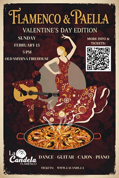 Enjoy authentic Spanish paellas by The Spaniard while watching a flamenco dance show by La Candela Flamenco.